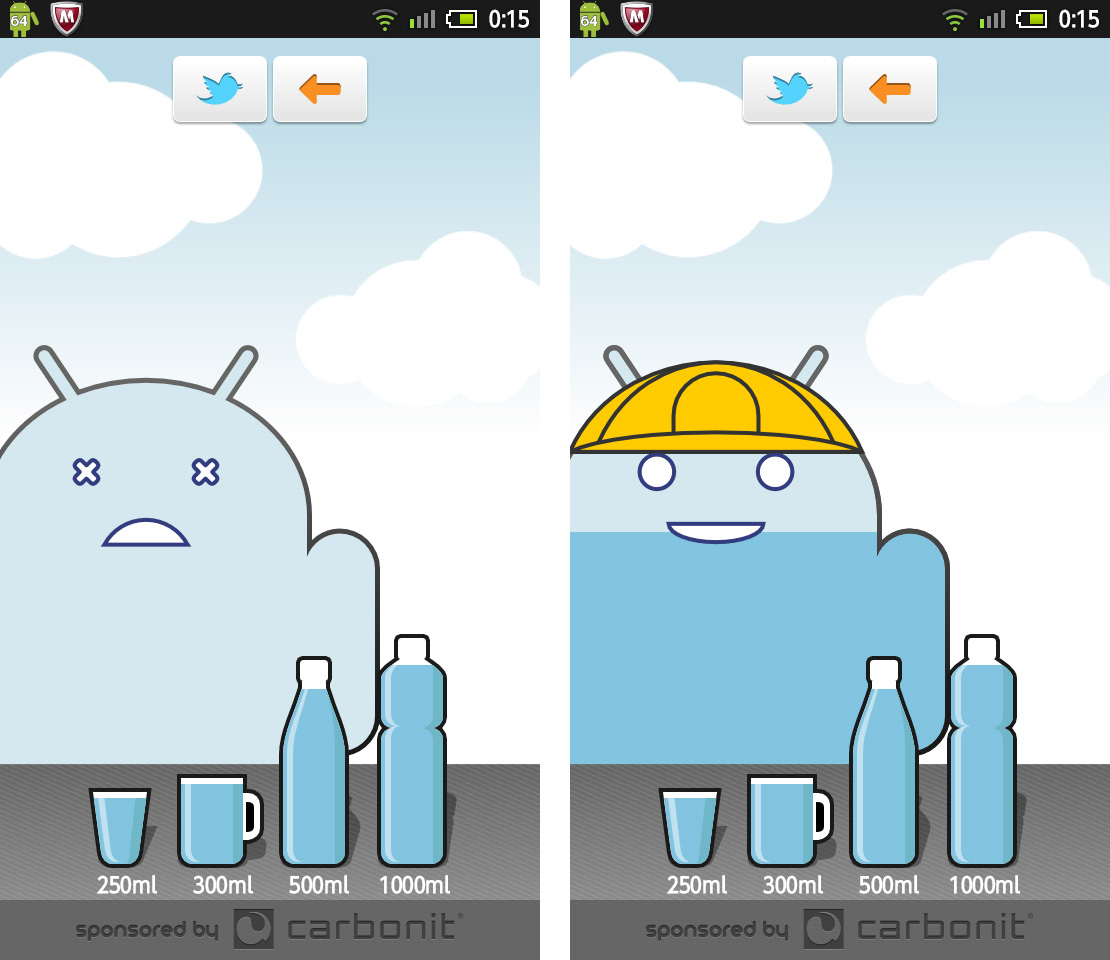 香港人工作忙碌,不要說要記住一日飲了幾多杯水,有時忙到水也忘了飲!Carbodroid 就可以讓你記低一日飲了幾多水,還可以給你適當的提示。Carbodroid 未喝水時很樣子很囧,想它開心你就要乖乖喝水喇,飲完之後只要按下 droid 前面的水樽便可。