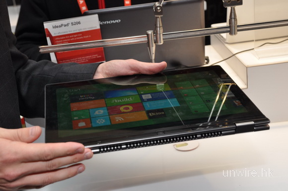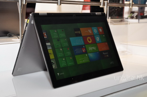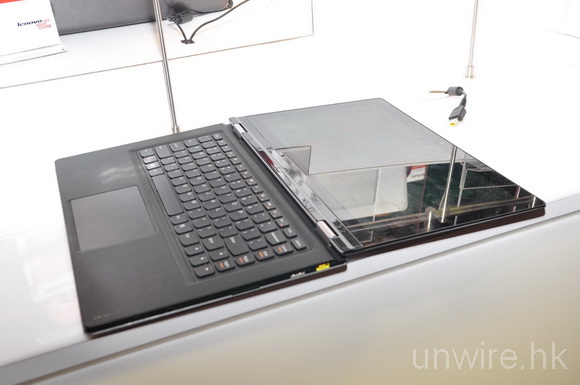 這IdeaPad Yoga採用雙樞軸設計,透過可以可360度轉動的螢幕,在手提電腦、平板電腦、直立式與卡座式四個模式間自由變換,只有1.47kg,厚16.9mm的它雖未有真正的平板電腦般輕便,但配備Windows 8和8GB RAM,它的效能超越平板電腦不少,算是拿到中間的平衡點。IdeaPad Yoga預定於2012年下半年發售,約售$1,199美元.,不知消費者會否受落呢?