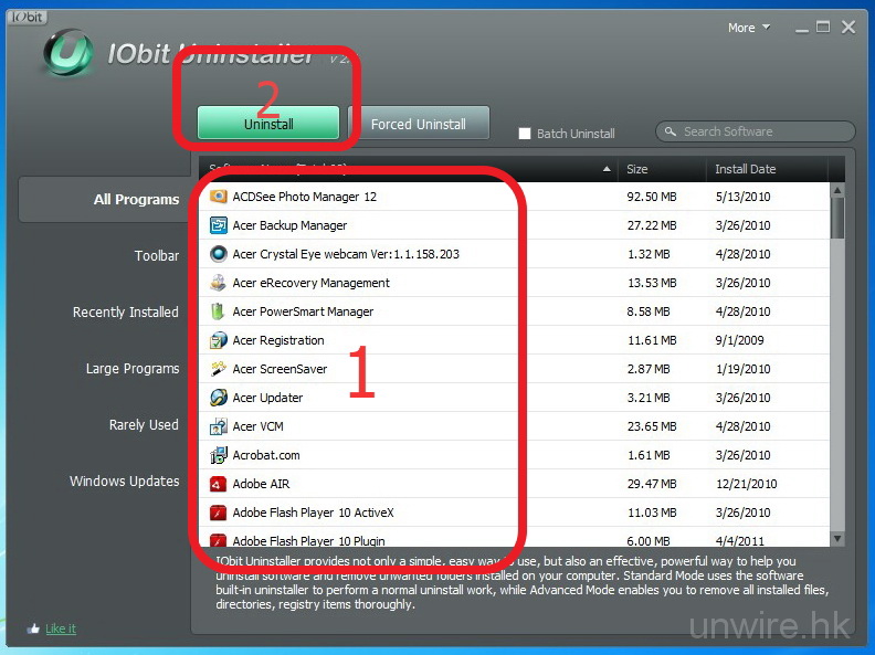 要徹底剷除程式所有餘下檔案與有關登錄檔,小編會使用《IObit Uninstaller》。此程式的好處是在正統方式移除程式後,再會自行掃偵有關餘黨,讓用戶可以做到真正 100% 移除程式。