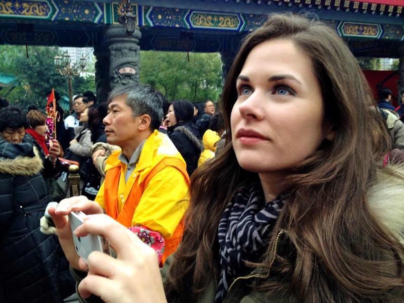 Lisa Bettany 剛好正到達香港,昨日就到過黃大仙廟,不知大家在裝香時有否看到她呢?