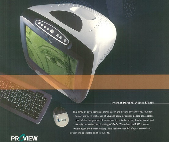 原來Proview的iPAD是在2000年推出的一體化電腦,看上去就與Apple的初代iMac差不多。據稱,這iPAD是在1998年用了3千萬美元開發的,並且到2009年為止售出了1萬至2萬部。這iPAD全名是Internet Personal Access Device,除了iPAD,Proview還有其他的i產品,包括iDVD、iClient、iPDA、iNote等等,今次iPAD是真有其物,Apple要在中國勝訴也是有一定的難度,可能到最後也是要乖乖付錢。
