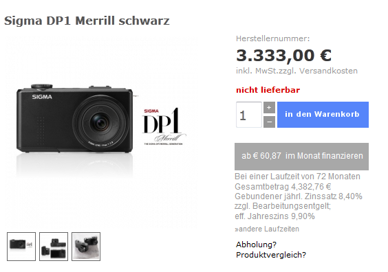 相比起降價後的SD1 Merrill只是$2,299美金(約$17,829港元),DP1/DP2 Merrill剛好貴足一倍。雖然只是建議零售價,但從此德國網站上見到的價錢,確實嚇怕了不少Sigma粉絲。DP1M及DP2M自CP+上出現後,Sigma一直沒有公布其價錢,但從SD1 Merrill的定價去看,要$2,000美金以上也是預計之內。再細心查看此網站,其他數碼相機如Canon EOS 60D也要909歐元,再扣除稅率,與市場上的$999美金相近,香港街價也約$7,500,所以DP1M及DP2M的售價可能真是$3,333歐元的可能性也不低。同樣在七除八扣下,街價相信要$25,000以上也說不定,不知道用慣只是$5,000左右的DP1/DP2用家會否感到驚訝呢?如果售價屬實的話,又不知道會有多少人會願意呢?