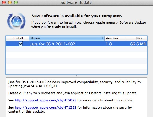 此木馬全名為”Trojan BackDoor.Flashback”,會有機會盜取Mac機內的毎個人資料。據俄羅斯防毒軟件商Dr. Web的分析師表示,被感染的電腦有約57%在美國,20%在加拿大、英國及澳洲也分別約有12%及6%,感染情況嚴重。專家亦指出,此木馬已於去年9月被發現,偽裝成Adobe Flash Player插件令電腦中招,至今已有超過400萬個網頁仍在散布中。只要用家到訪這些網站,而Safari瀏覽器也設定為自動開啟安全檔案時,木馬會自動關閉防毒軟件再自行安裝及散布。數日前Apple已經推出了”Java for OS X Lion 2012-001及Java for Mac OS X 10.6 Update 7“修正問題,隨後亦推出另一個”Java for OS X Lion 2012-002″更新也將原有的Java 1.6.0_29版本升級至1.6.0_31,進一步作出修正,大家已可以透過軟體更新去升級。未升級的用家趕快去看看吧!希望大家的Mac機至今仍然平安無事。