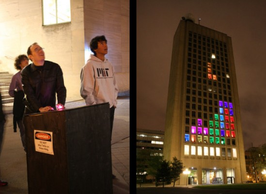 作者忘記分類 用大廈牆身玩俄羅斯方塊 作者 肥倫 發佈日期 2012-04-25 閱讀時間 1分鐘 字體大小 A A A 分享 大家試過在幾大的屏幕畫面玩俄羅斯方塊?美國 MIT 學生將一幢大廈的窗口變為七彩顏色,用來變為一個大屏幕玩俄羅斯方塊。 今次改裝的大廈是 Massachusetts 州的 Green building,為所有窗口裝上了無線 RGB LED 燈。 來源 分享到 : 最新影片 Follow 我們 : 650k粉絲Facebook143k訂閱YouTube51k跟隨者Instagram3.7k粉絲X (formerly Twitter)6.6kPostsTelegram Subscribe Login Notify of new follow-up comments new replies to my comments Please login to comment 1 Comment Oldest Newest Most Voted Inline Feedbacks View all comments Name 13 years ago 橫向只得九格!