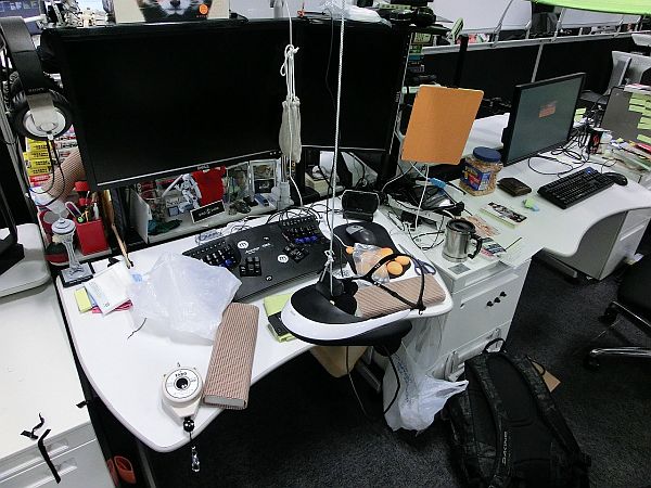 - 人體工學鍵盤(這個鍵盤還是他自己改良的,加上 TrackPoint)搭配操作