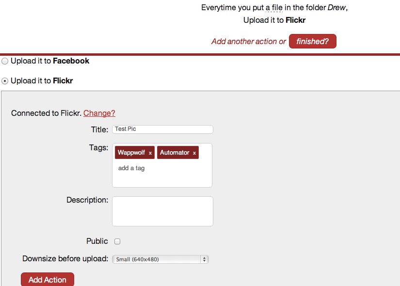另外,你也可以建立一個叫做 「Drew」的文件夾,只要把圖片放入去,圖片就會自動被發送到 Flickr / Facebook 裡。你也可以把 Google Drive 的檔案同步到 Dropbox,往後還會推出 SkyDrive 和 Box 的版本,有助你使用各個雲端平台。