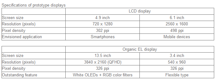 至於OLED屏幕可以在13.5吋大小上提供3840 x 2160超高解像度,也提供326ppi,十分適合應用於Notebook、Ultrabook等大尺寸裝置上,另外還有一款3.4吋540 x 960解像度的OLED屏幕提供。相比起Samsung的AMOLED技術,IGZO可以做到真正RGB原色設計,質素上更出色,像素亦更高,唯一可能要考慮的是成本問題。之前有傳Apple將會在未來的裝置上使用IGZO屏幕,有了可彎曲的設計,不知道Apple的新產品又會有什麼新的花款呢?