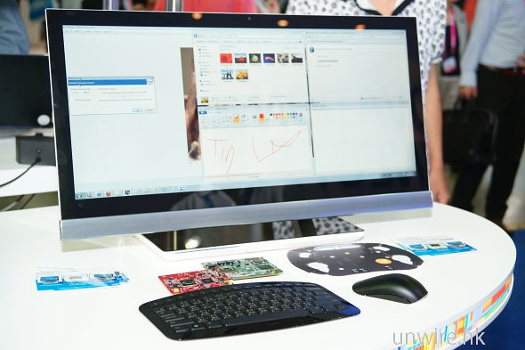 Intel亦同樣展示出支援無線充電功能的一體式電腦,看上去就是一個大屏幕,但一切電腦的元件及無線充電設計均在屏幕下的Docking上。