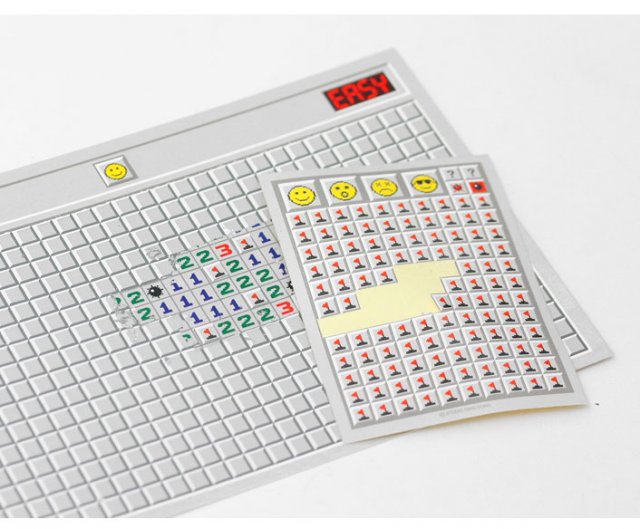 這紙製的踩地雷遊戲,就是用硬幣去刮走格子,還能夠貼上旗子和加上問號。每張踩地雷售$2美元,雖然每張只能玩一次,而且也會有刮第一格便踩中地雷的可能性,確是有點貴,但作為經典遊戲的真實版本,對於這遊戲的愛好者來說,也算是個不可多得的紀念品吧。
