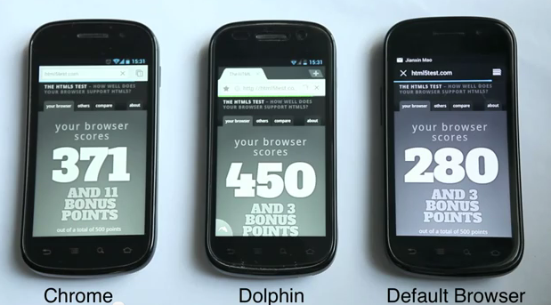 喜愛用智能手機上網的用戶要注意了,Beta版海豚瀏覽器的HTML5的跑分高達450以上,比第二位的Opera拋離80分,比Android內建的瀏覽器,在HTML5的表現優勝5至10倍。