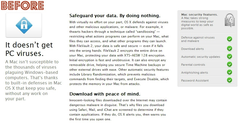 除了標題的更改外,相關的內容亦有所轉變。有電腦保安專家認為,這改變不僅是網站的文字上,同時亦代表Apple對電腦保安陸續加強關注,而OS X 10.8的新功能Gatekeeper相信是最佳實證;Gatekeeper讓用戶控制哪些軟件可以安裝到電腦上。