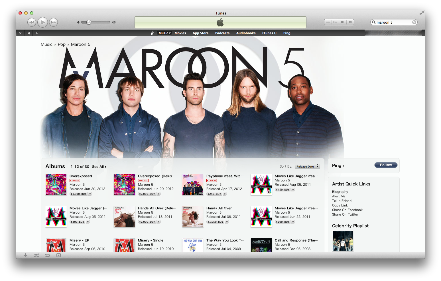 筆者發現,香港iTunes Store的歌曲更新似乎未能與外國同步,例如容祖兒的國語大碟《Moment》內的5首歌,已經搶先在iTunes Store內可供購買下載,雖然KKBOX都有提供,但可見後來者iTunes亦不輸蝕。偏偏外國歌手的新專輯,例如Maroon 5的《Overexposed》在日本已經上架,香港則未見蹤影,相信這可能跟各地版權和大碟發行日期有關。以Apple過去的成功經驗,相信本地樂壇的數碼音樂購買下載模式將有機會改寫,但在影片租售方面,似乎還要下一番功夫。