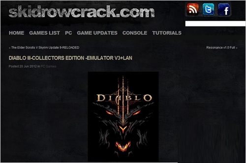 破解版早於推出初期便可以下載,但大部分均未能真正可以玩到,暴雪更認為,Diablo 3沒有被破解的可能。不過一著名的遊戲破解組織skidrowcrack.com便推出了網絡模擬版本的Diablo 3,透過自己建立的專屬伺服器,並修改遊戲變成了可以在私人網絡上對戰,對於尚未推出的地方如中國,可以預計得到將會變得非常受歡迎。據知破解版可以完全正常運作,所有資料均會定期向真正的伺服器更新,外國更有用家拍了一條Youtube片段去諷刺暴雪。至於社區經理所發表的原文大家可以看看下面的中英對照。