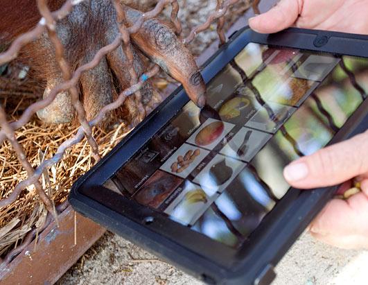 年前美國密爾沃基動物園(Milwaukee County Zoo)嘗試教導猩猩學習使用iPad,年初也將相同方法引入到另一間叢林島動物(Jungle Island Zoo)上,至今他們已經學會用iPad點餐。