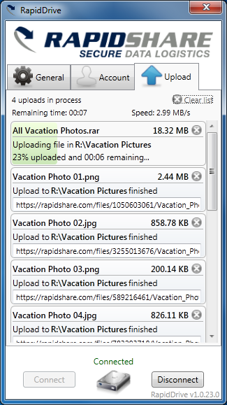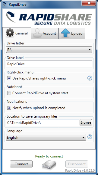 與Dropbox一樣,RapidDrive會提供Windows的應用程式,安裝後會在檔案管理員上見到RapidDrive資料夾,只表將檔案拉到資料夾內便可以令不同的電腦檔案同步。RapidDrive暫時只給予已付費的會員使用,與RapidShare一樣可以有無限的儲存空間及速度,但其收費不算便宜,30日RapidPro需要9.9英磅,150日就要29.90英磅,2年就99.90英磅。現階段只能夠兼容Windows平台,並且是測試版本,預計要到九月才會正式推出。