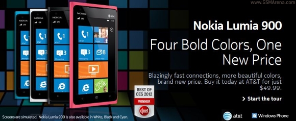 目前Nokia的旗艦級手機仍是Lumia 900,採用Windows Phone系統,在美國地區簽兩年合約便可以用99美元帶走。近日AT&T就宣布,其售價將會減半至49.99美元以吸引用家。