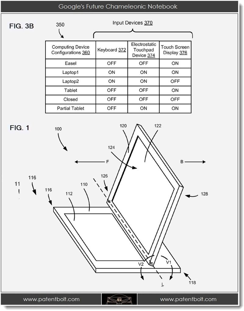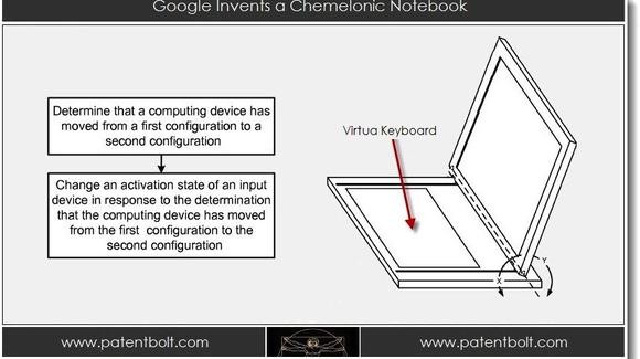 專利內容是一部具有Notebook與平板功能的混合式設計,就像Asus Transformer般既是Notebook也可以變身成平板,但鍵盤設計採用虛擬輸入方式。據Patentbolt的資料得知,這部混合式平板將會是Android及Chrome OS兩用,即很大機會在Notebook模式時就會變成Chrome OS,平板是變身成Android,不過沒有實體鍵盤是否能被市場接受呢?