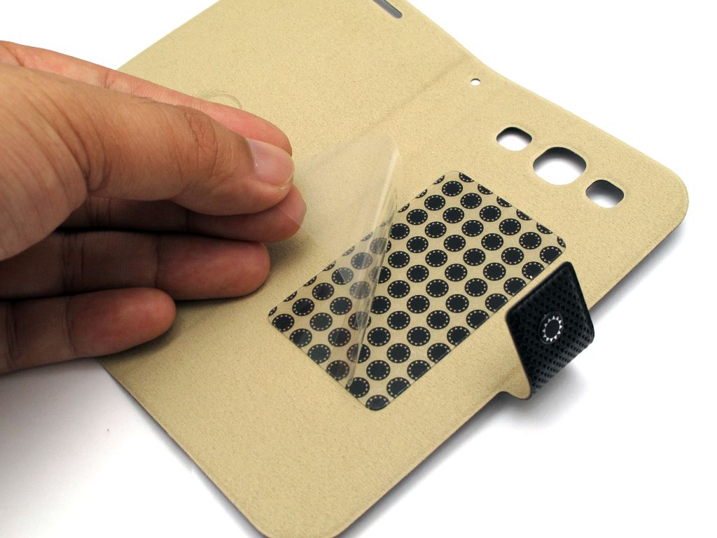 一般擁有面蓋的 GS3 保護套,也會內藏一個硬膠機殼,用以保護手機機身,這種設計雖然確有助進一步加強對機身的保護性,但就無可避免會令整個保護套連手機加重了不少。Fenice Diario 就一於飛走保護殼,改用魔術貼設計!只要將 GS3 機背電池蓋位清潔好後,再貼在保護套的「內籠」,就可以穩定將手機固定在 Fenice Diario 上,而且魔術貼黏力頗強,而且可重覆黏貼,也不會在 GS3 機背留下任何痕跡。至於魔術貼本身,如果沾上灰塵或污物,只須使用膠紙將污物黏出來即可,打理十分方便。