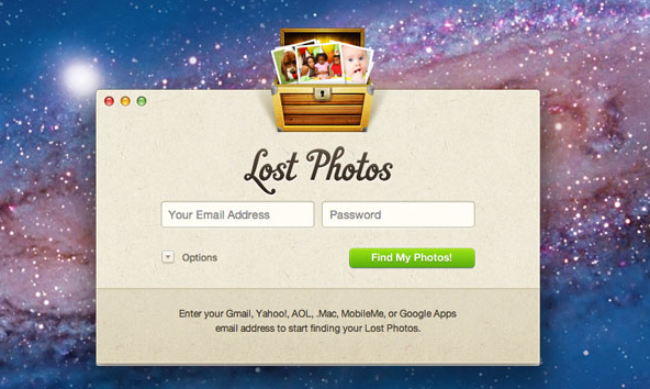 有時朋友、家人用 email send 給小妹的相片,隨著電腦壞、電郵被刪除…… 這些照片都一一失去蹤影。如果大家想重溫一下這些照片的話,可以用 Lost Photos 來找回仍在電郵信箱中的舊照片,大家可以用 Lost Photo 登入不同的電郵信箱,而且支援甚廣,無論是 Gmail、Yahoo、MobileMe 等都可以用。唯一可惜就是未能支援 Hotmail。