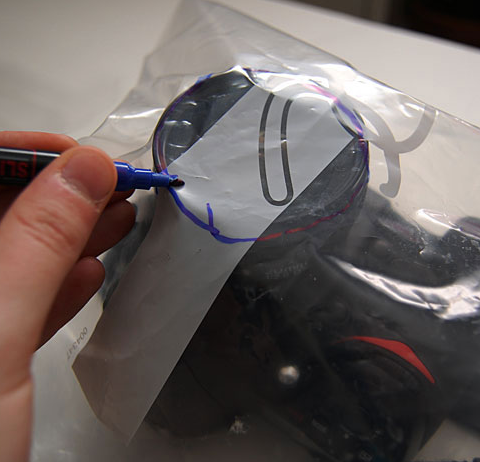 如果落雨的時候突然任性地想拍照片但又無 rain cover ,可以試下用大保鮮袋 D.I.Y. 一個,做法是把相機放入保鮮袋,用 marker 畫底鏡頭位置,剪一個洞,將保鮮袋內外反轉,然後用 gaffer tape 把遮光罩固定貼好在洞的位置,再把袋反過來像正常一樣,同樣從外面圍著遮光罩貼好 gaffer tape ,放入相機就完成啦!