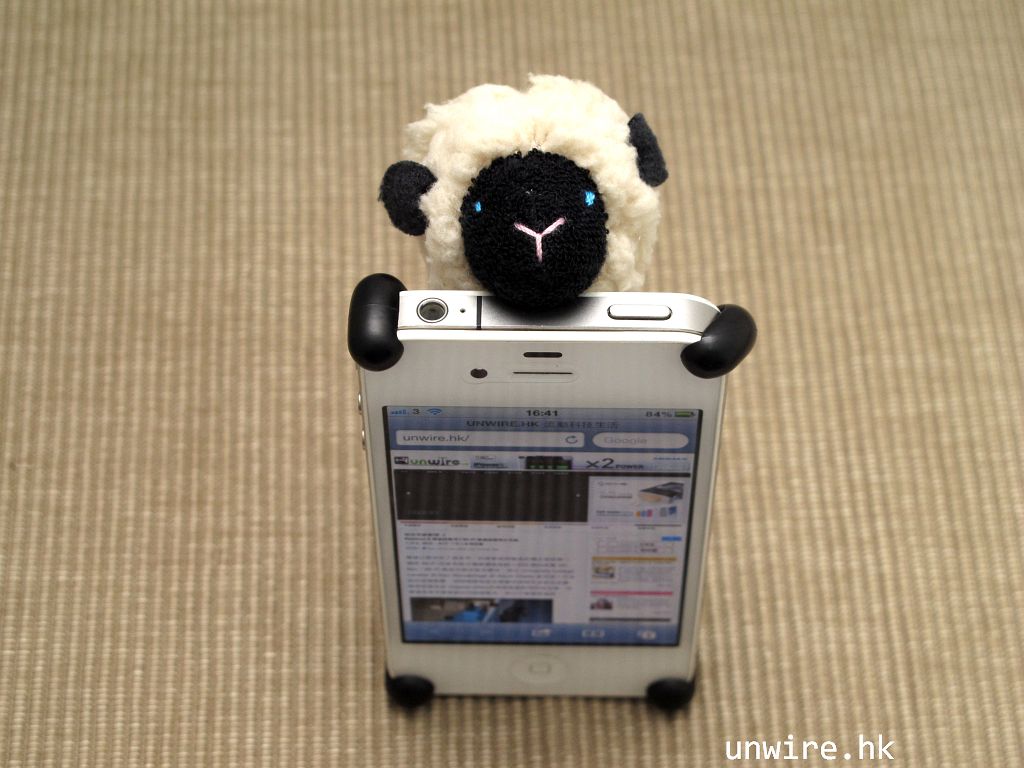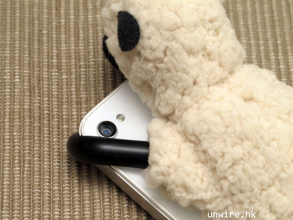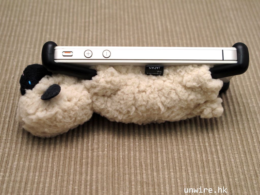 用了牠的 iPhone 放在枱上時,可以橫向架起,使 screen 對著你,代替 iPhone 架,看片和用手機十分方便。 如果想打直架起,只需用一些東西輕輕托一下即可。小羊羊頭部較側,可以移去左右,不會擋住拍照及閃光燈。Sheepy 的腳可以保護 iPhone 的四個角,而且背部柔軟,跌在地上時減輕手機所受的損害,不過大家都捨不得弄跌牠吧!