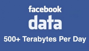 除此之外還有每日 27 億個 Like 動作及 3 億張相片需要處理,並需要執行 70,000 個指令,每半小時需要大概找尋 105TB 資料量,而 Facebook 目前的儲存資料已超過 100PB (1PB = 1,000TB / 1TB = 1,000GB),並放在單一的儲存叢集內,數據並沒有分開擺放。Facebook 並不像其他公司將資料分開不同叢集去處理,原因是方便工程師可以更迅速得到資料以得到實際效果,另外 Parikh 亦表示,對於資料濫用的行為採取零容忍態度,所有存取行為都會受到監視。