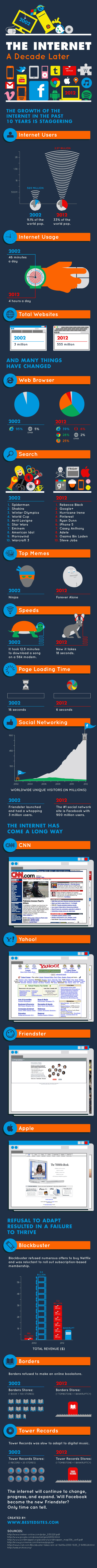 現時 Internet 已成為了生活的一部分,沒有了 Internet 就幾乎等於與外界斷絕一樣。大家還記得 10 年前的 Internet 又是怎樣?與現時比較又相差多遠?大家看看以下圖表比較就會一清二楚。