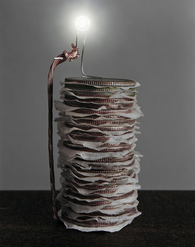 大家知道很多東西都是可以用來發電的嗎?攝影師 Caleb Charland 以科學為基礎拍了一輯照片,他用不同的東西如蘋果和疊在一起的硬幣等作電池發電。用大自然的東西來發電,將科學與藝術結合,不但有和諧感和創意,照片效果都好靚。