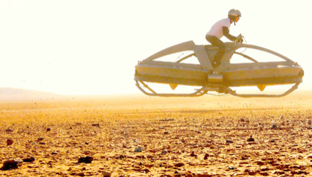 最近看到一後片段,是加州的高科技研究公司 Aerofex 展示測試成功的懸浮車,飛行者可直觀控制傾斜、轉動和搖擺,不需人工智能、飛行軟件和任何形式的電子產品。特別設計使飛行員不需考慮到平行的問題都可把懸浮單車平衡浮起,感覺像科幻片的裝置。