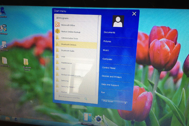 這個S Launcher,就是一個程式快捷列,它會出現在桌面下方,上面會有模擬開始功能表的東西,也能把其他捷徑拖上去,可以更快速方便地開啓。對於念舊的用家來說,這個快捷列無疑是十分方便,但它的設計,怎麼有點像另一個系統的介面呢?嗯,這當中一定有什麼誤會。
