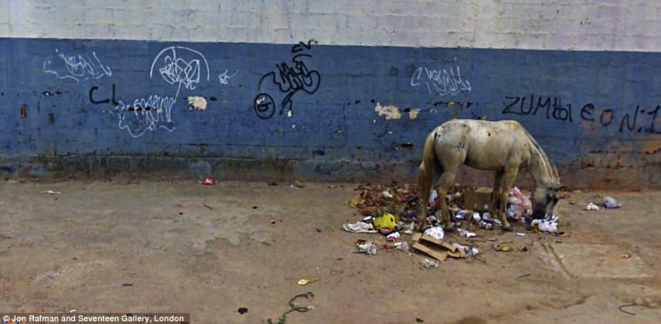 流浪中的馬在找尋食物..