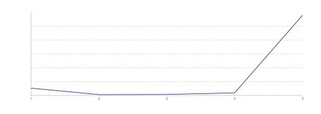 大家還記得以前的 YouTube 都有 5 星的評分標準的嗎?但 2010 年的中段就改為只用 thumbs up 或 thumbs down 評分,你們看看 rating 的分佈圖可能會明白了。