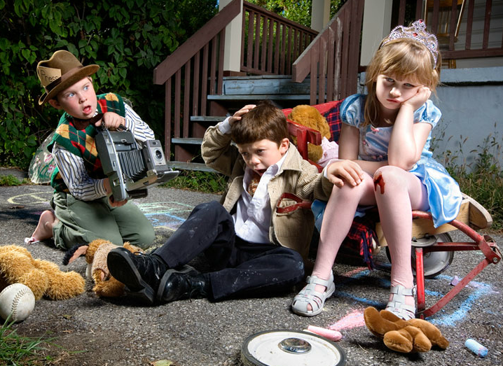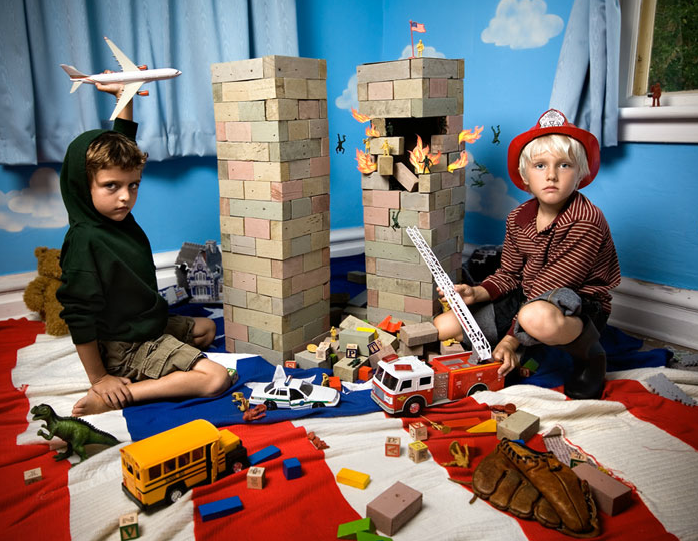 如拿大攝影師 Jonathan Hobin 拍了一輯相 “In The Playroom”,讓大人們不禁有種不安的感覺,他拍出一些小朋友無知地用玩具重現世界聞名的新聞,並且全都是悲劇,如 911, Jonestown (1978年發生人民聖殿教教徒集體自殺慘劇) 及戴安娜王妃之死等,把沉重的歷史由小孩和玩具扮演出來,再可愛都令人不寒而慄。