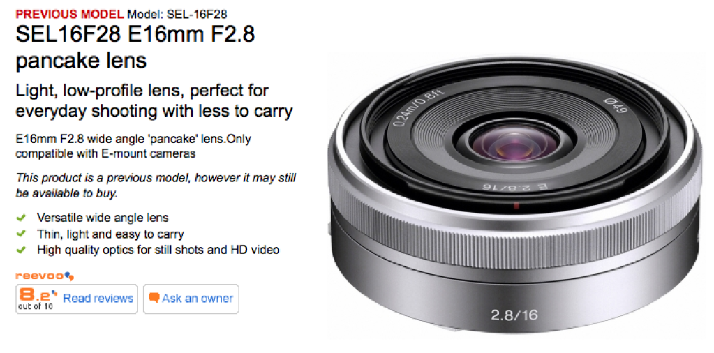 Sony NEX 系列相機推出兩年多,仍會有不同的新鏡頭推出。其中第一批推出的鏡頭包括 16mm f/2.8 餅鏡,但 Sony UK 日前將此鏡列為舊有型號,這是否意味著將會有新型號推出?
