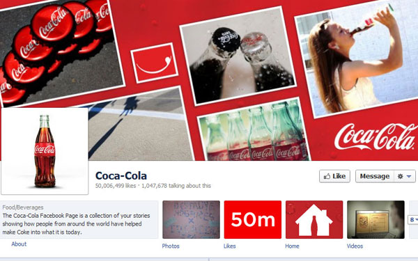 美國時間昨日早上9時,可口可樂的Facebook Fan Page取得第5000萬個粉絲,成為了全球首個擁有超過5000萬Facebook粉絲的品牌,而這Facebook品牌一哥大幅度拋離迪士尼、Converse和Starbucks等千多萬人。 為了慶祝這個紀錄,可口可樂在Facebook推出了新App,讓粉絲提供改善世界的方法,可口可樂會在明年公布結果,並支持這些創意實踐出來。 來源:mashable