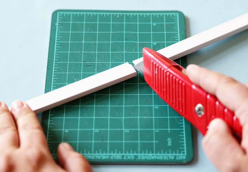 用美工刀把膠模 ( 五金店可以找到) 分割成你之前量度到想要的長度。