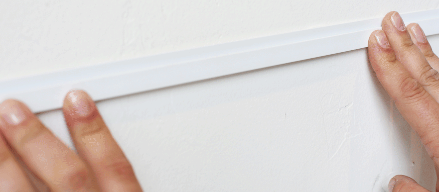 因為整個架加上照片都好輕,隨便一個方法都可以固定在牆上,例如用魔術貼、雙面膠紙、blu-tack 等等把膠模貼在之前記下的位置。網站就用 3M Removable Poster Strip 把架貼好,貼的時候記得正面的開口向上,使你可以把相放上去。