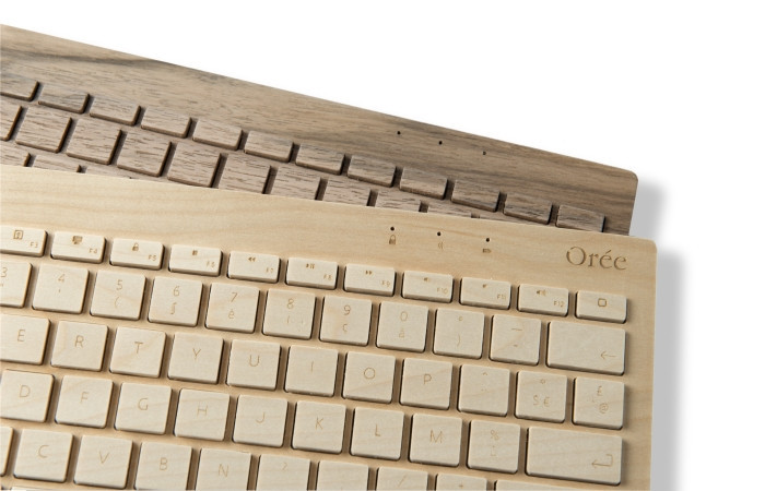 這個Oree桃木藍牙無線鍵盤,內置Broadcom藍牙3.0芯片,外型既簡約又優雅。顧名思義以桃木為塑材,整個鍵盤以單一件桃木人手製成,精心打磨光滑後再以油作為保護,令耐用度大大提高。由於鍵盤為個人訂製品,可按用戶的需求選擇美式、英式、加拿大英語或加拿大法語QWERTY的Mac或Windows鍵盤Layout,就連按鍵的字體亦有3款可供挑選。售價為125歐元(約$1,250港元),包刻名服務,除桃木外,Oree亦有製作楓木無線鍵盤。