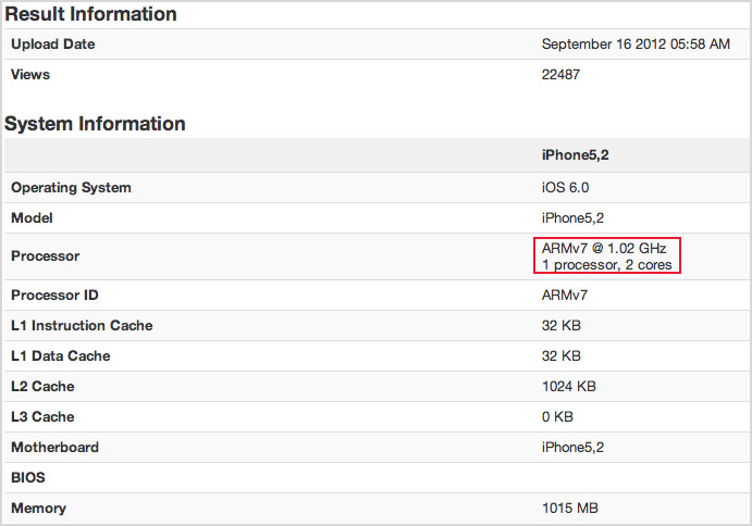 Apple 的 iPhone 及 iPad 從來不強調分數高低,只以操作體驗去吸引用家。不過分數亦可以作為一個參考數據,有不少用家留意其效能數據才決定是否吸引。在最新的 Geekbench 上見到,iPhone 5 的整體分數達 1,601,比起 iPhone 4S 的 634 分及 New iPad 的 734 要高得多,除了有 1GB 記憶體及新的 A6 SoC 外,升級至 iOS 6 亦可能有所幫助。