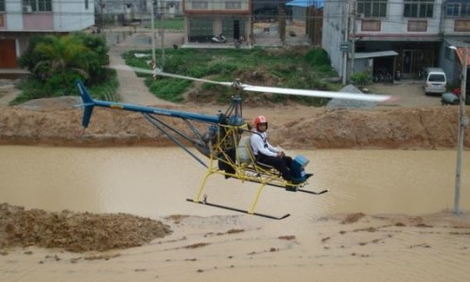 一個來自廣東省的男人,憑著自學的知識僅用了 3000 美元造出一架直昇機,製作過程花上了 近 10 年的時間,雖然不是最精巧的設計,但他的確親手造出了能飛的直昇機。