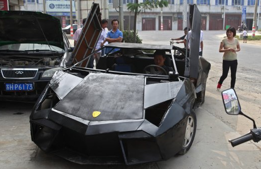 中國人製很多翻版的東西都造得很不錯。Wang Jian 花了少於 USD $10,000 造成一架林竇堅尼,無可否認這看來是一個簡陋版,不過可造出這個相似的外表已經不錯。