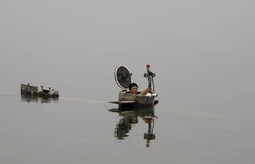 Tao Xiangli 用金屬桶和一些航行需要的硬件整了一架潛艇,潛艇大部分位置都是用二手零件拼湊起來的。