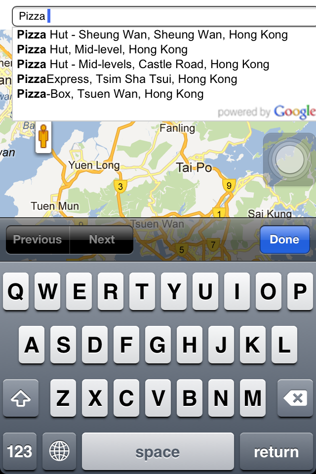 與iFindYou或StreetViewer等Apps有點不同,這個在Map Channels製作的地圖,在搜索地點時加入了Auto-Fill功能,用起來較方便。當找到目的地後,只要將左上角的衣夾人拖曳到地圖即可看到Street View街景圖。