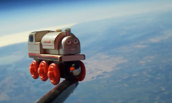 相信每個慈父都喜歡跟自己的小朋友玩玩具,出盡法寶想讓小朋友玩得開心。Ron Fugelseth 跟他 4 歲大的兒子一起,把兒子最愛的玩具火車頭 Stanley 送上太空,他們用一個氣象汽球、發泡膠盒、高清攝錄機和一部舊手機的 GPS 拍下 Stanley 的太空之旅,相信他的兒子長大後看這段片及回憶起來會好感動吧!