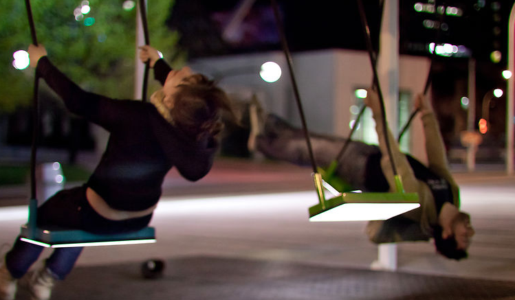 好多家長都想子女從小就培養對音樂的興趣。在蒙特利爾,有可以讓人一邊盪鞦韆,一邊演奏音樂的裝置。這裝置有 21 個互動式鞦韆,每一個鞦韆可奏出一個特定的音調,擺動時就會奏起,使人可以用 21 個不同音調奏出樂曲,可以令小朋友以更活潑的方式去接觸音樂。加上一個人是奏不出樂曲的,多人合作才可成曲,所以可訓練他們的合作性。