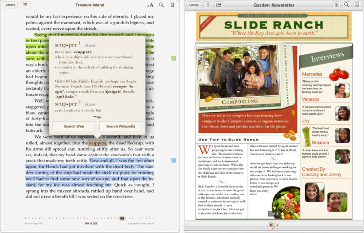 配合年初推出的新iPad,Apple推出了免費的iBooks Author和iBooks 2,讓人輕易製作和閱覽互動的電子教材;一般相信,Apple將會以體積較輕巧的iPad Mini,搶攻教育方面的電子書/平板市場。