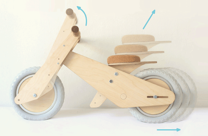 小朋友大得好快,小妹的姪兒兩歲時最愛踩的單車現在因為腳長了已經踏不到。Noelia Vallano Alvaro 設計的 B’kid 可以幫兒童自行車的壽命延長一點,它是一輛單車,可以讓小朋友可以由兩歲踩到六歲,就不會太浪費啦!