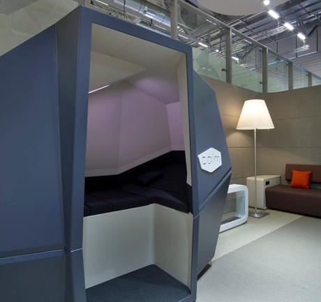 用家可以選擇小睡 10, 15 或 20 分鐘,CalmSpace 會用橙色燈光幫肋用家甜睡,用藍色的自然燈光叫醒用家。它的設計可防止員工在辦公桌上睡覺或打瞌睡,更可幫他們減輕壓力、提高大腦能力和生產力。