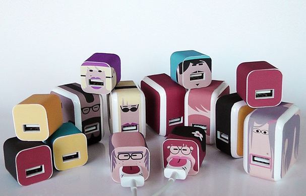 它的售價為 USD $10 一包,裏面有四張可移除的貼紙,包括有包括一張轉接插頭 (不是每個尺寸的轉接插頭都可以用到)、USB 線的兩端及一組耳機用的貼紙。有不同人物的貼紙可供選擇,例如 “Britney” and “Cat Lady”,如果都驚跟別人撞款的話,可用自己的樣子訂制。或者不想用樣子,可選購不同顏色的貼紙,低調但特別。