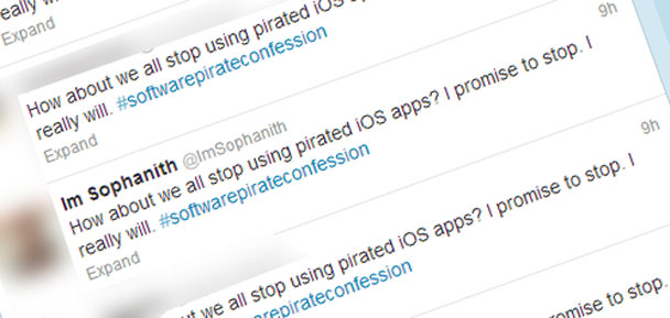 外國有用戶購買了價值54.99美元的Oxford Deluxe字典App;在使用時,App要求用家以Twitter帳號登入,否則不能使用。數分鐘後,用戶發現那平日沒有使用的Twitter帳號竟有人回應,方發現字典App以用戶身份自動發了一條tweet「How about we all stop using pirated iOS apps? I promise to stop. I really will. #softwarepirateconfession」。用戶自問所用的Apps都是買回來的,翻查原因,才發現字典App會檢查手機,當中因為發現可以安裝翻版的「Installous」,所以就自動發Tweet。